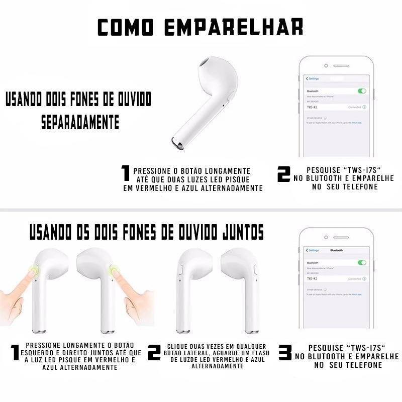 1x Conjunto de fone Bluetooth i7 TWS - sendo 1 unidade do lado direito e uma do esquerdo
